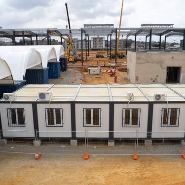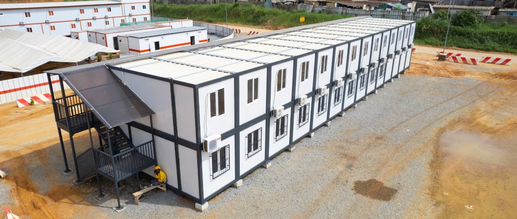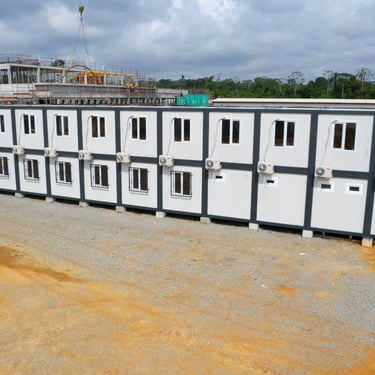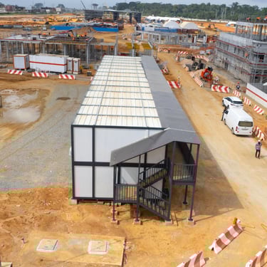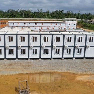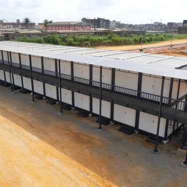 A complete base camp facility delivered for Colas Rail as part of the Abidjan Metro project in Abobo Sagbé, providing functional and reliable modular accommodation.